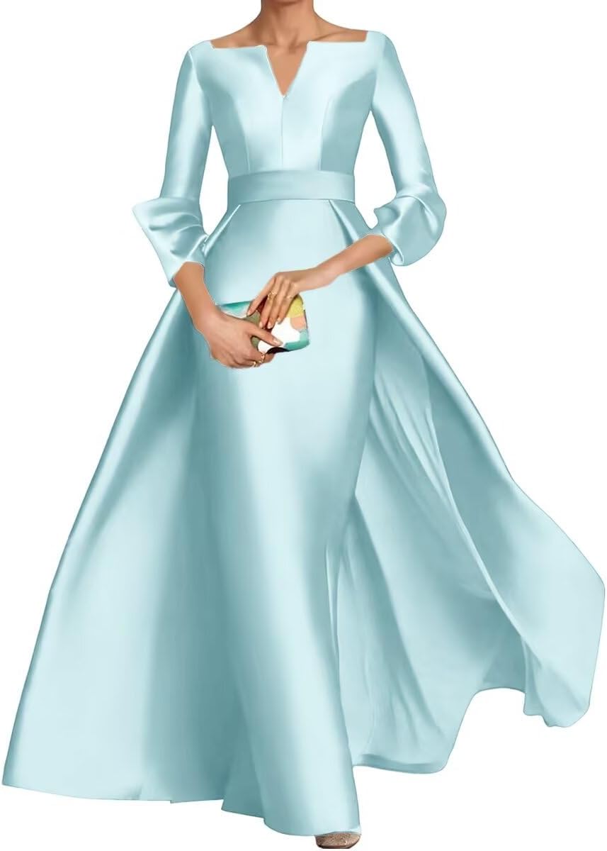 | Embellishment Feature | A Line, Long Sleeve, Mermaid, Satin |