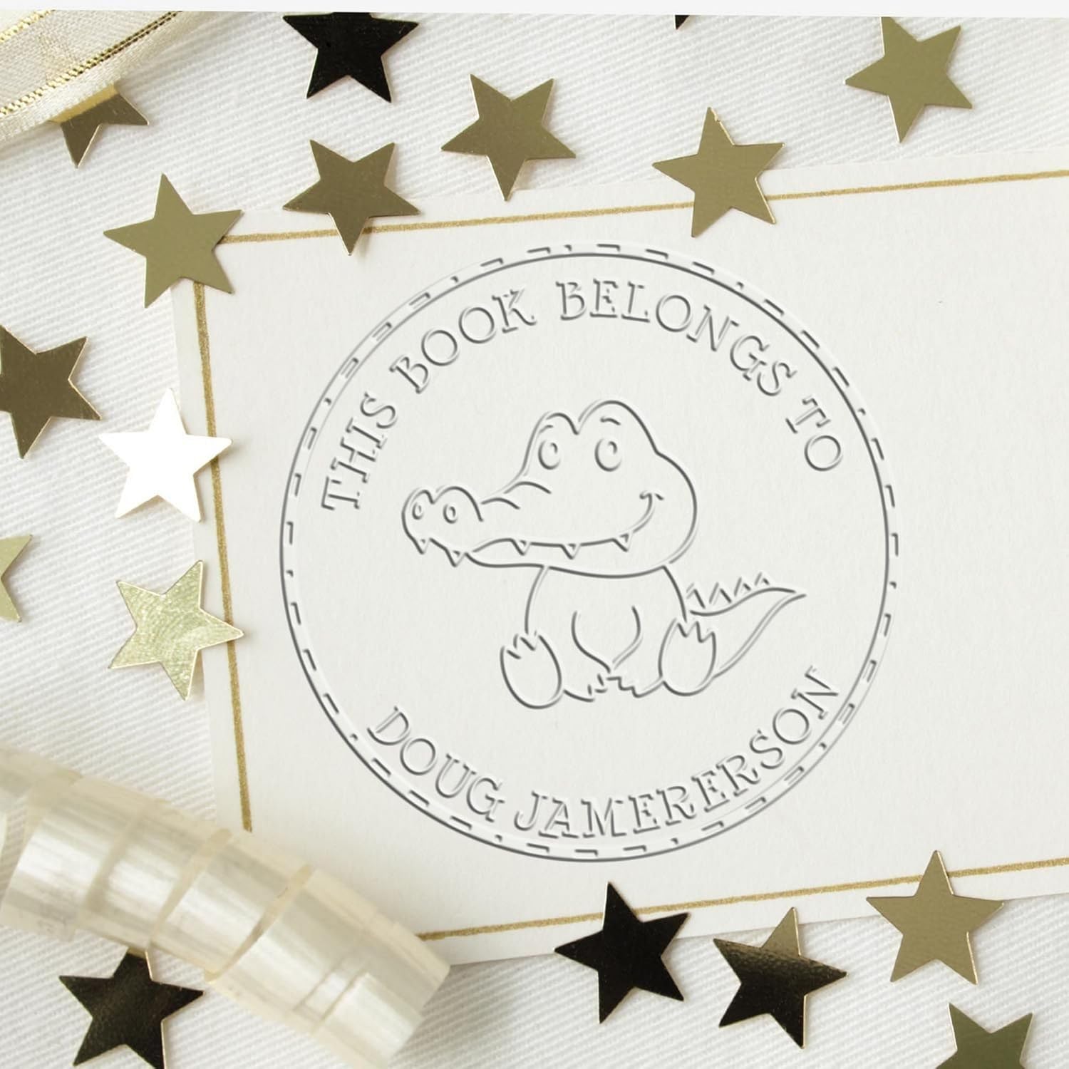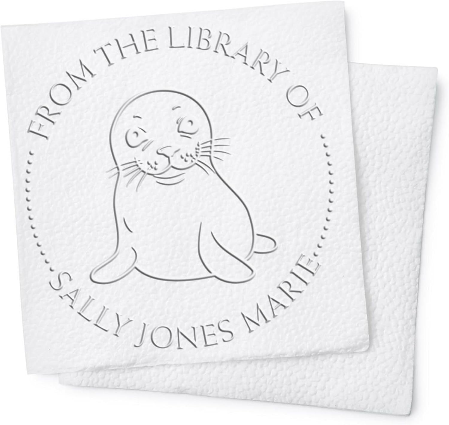 Transform your library and infuse a touch of whimsy into your workspace with the Desk Friendly Turtle Custom Made Library Embossing Seal. This exquisite tool is not just an accessory but a gateway to elevating the presentation of your cherished book collection, making every page turn an experience. Designed with the discerning book lover in mind, this embosser is a testament to craftsmanship, functionality, and elegance. Crafted to perfection, the Desk Friendly Turtle Embossing Seal features a robust design that guarantees a clear, crisp, and consistent impression every time. With an impression size of 1-5/8" in diameter, it's the perfect size for personalizing books, official documents, and crafts. The embosser is engineered to handle a variety of paper weights and sizes, ensuring versatility and ease of use. Whether you're marking a delicate page in a novel or embossing a thick certificate, this tool performs with unparalleled precision. At the heart of this embosser's design is the charming image of a Friendly Turtle, surrounded by a clean, round design that can be customized with phrases like "This Book Belongs To," "From The Library of," or "Ex Libris," followed by your name or a special saying. This level of personalization adds a unique touch to your collection, making each book distinctly yours. The top and bottom arc texts, separated by a line of dots, frame the turtle beautifully, creating an elegant and timeless mark. The Desk Friendly Turtle Custom Made Library Embossing Seal is not just about aesthetics; it's a tool that offers practical benefits. It elevates the presentation of your books, adding a sophisticated touch that ink stamps simply cannot match. The embossed marks are smudge-proof and long-lasting, ensuring your mark of ownership or identity remains pristine over time. This makes it an ideal choice for kindergarten teachers who wish to instill a sense of responsibility and pride in book ownership among young readers.