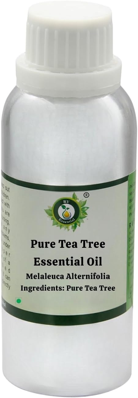 R V Essential Pure Tea Tree Essential Oil- Melaleuca Alternifolia (100% Pure and Natural Therapeutic Grade). Oils are packed in high quality amber glass bottles till 100ml. And 300ml, 630ml & 1250ml in high quality virgin aluminium bottles.
