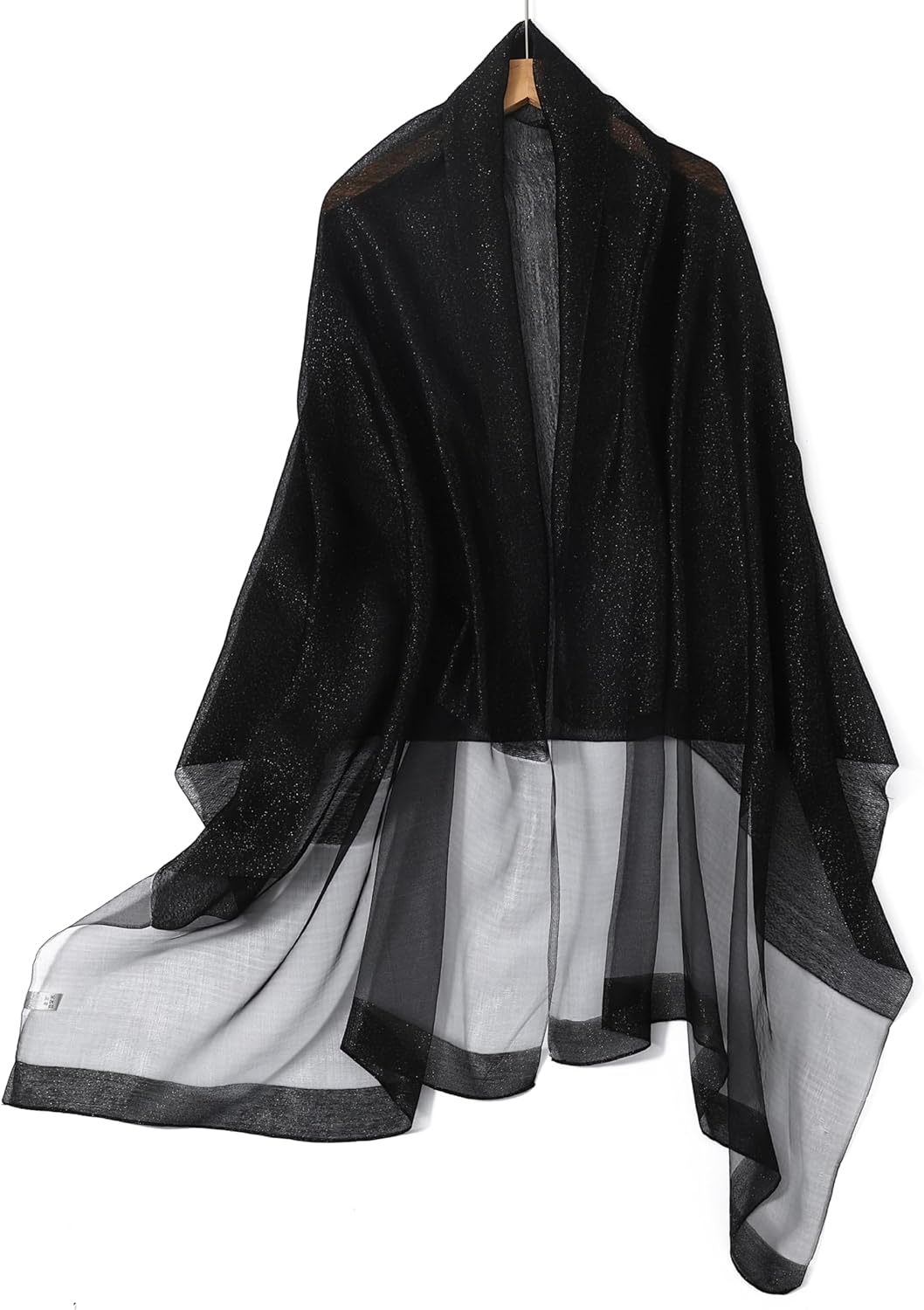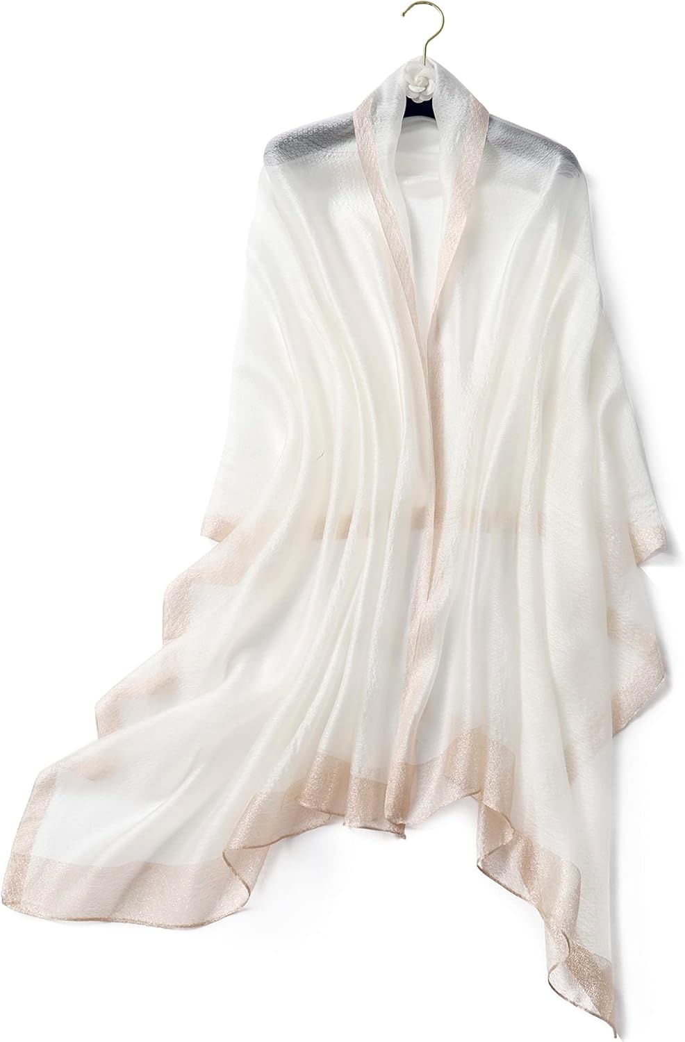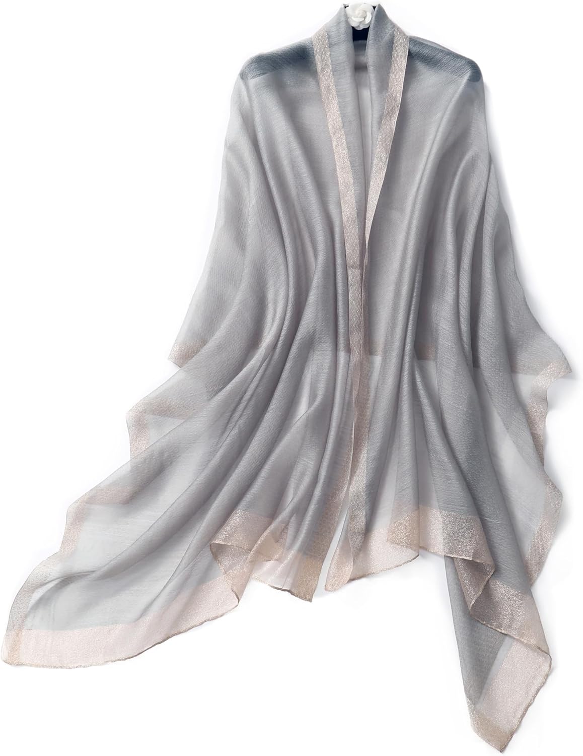SPARKLING AND LUXURIOUS: Our shawl features a unique textured base fabric with a border of metallic thread, making it an elegant and glamorous accessory. The combination of these elements gives the shawl a sparkling and luxurious look, perfect for adding a touch of sophistication to any outfit.