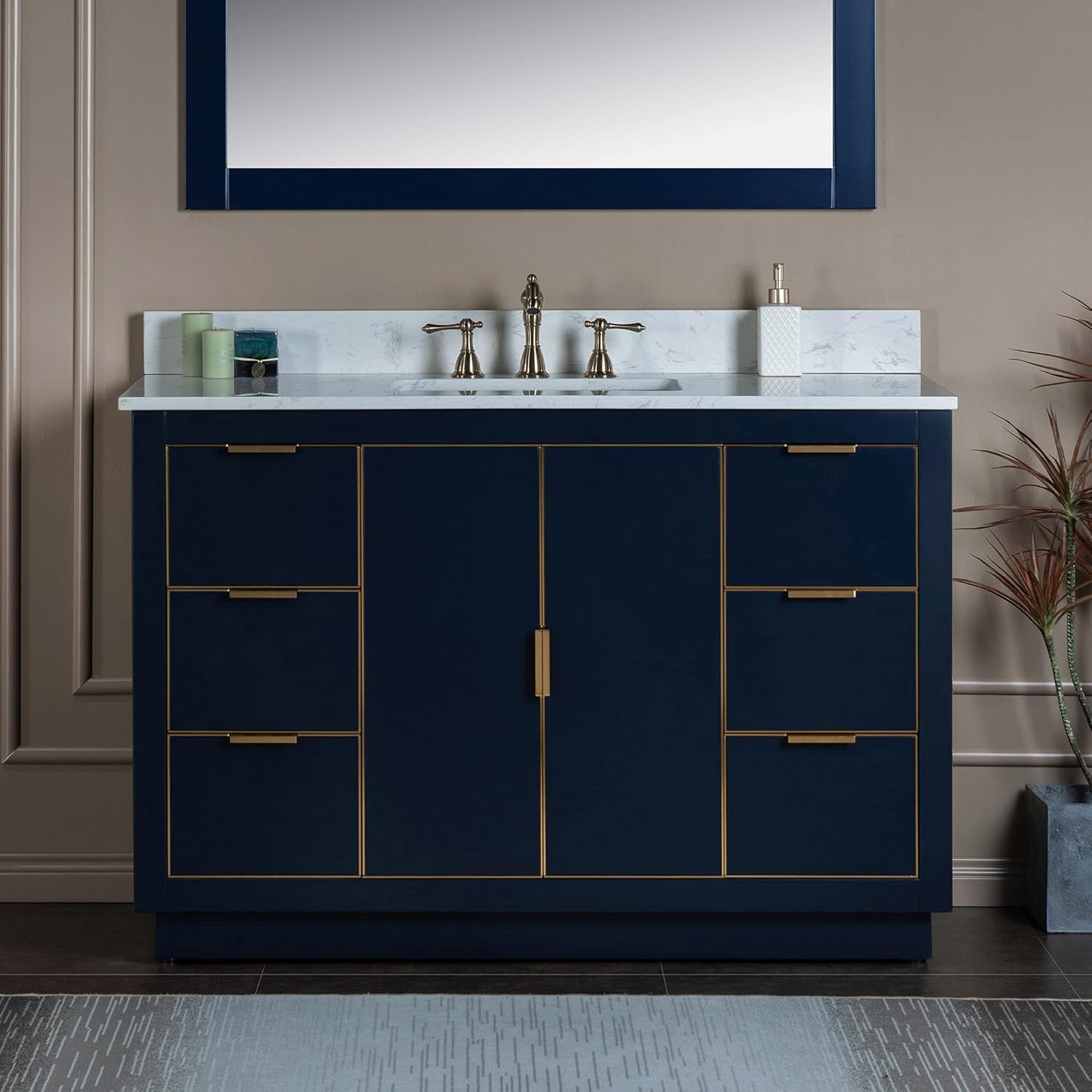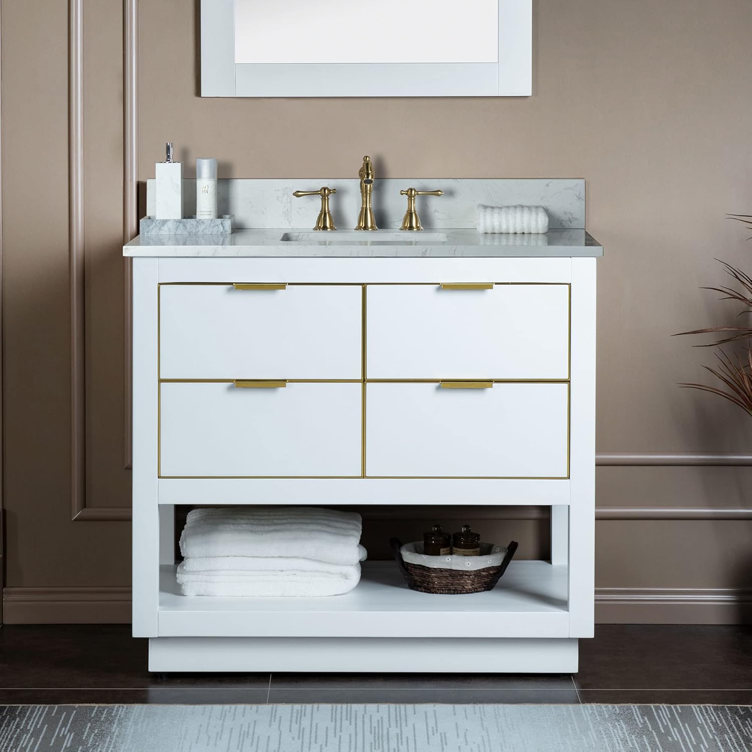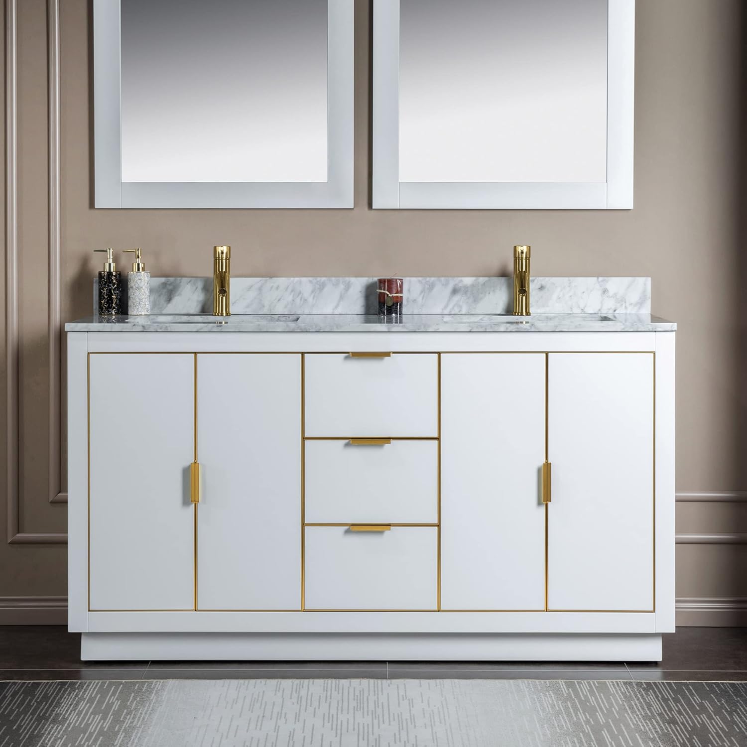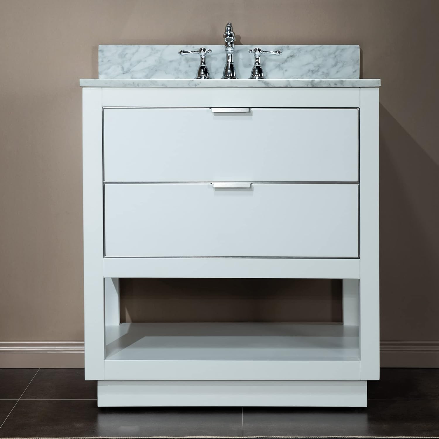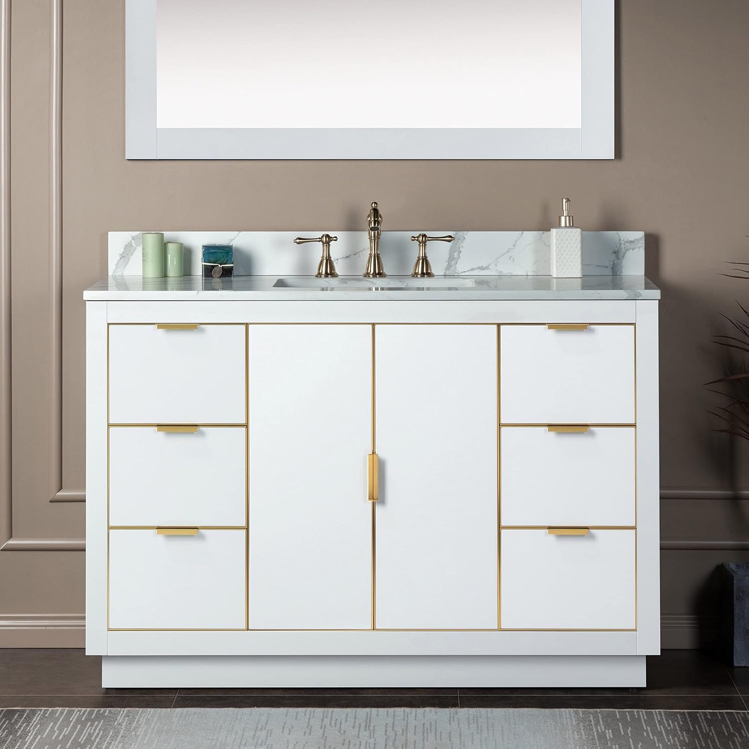 Venice 49"W x 22"D Bath Vanity in White with Marble Vanity top in Carrara White with White Basin with 8"cc Faucet holes